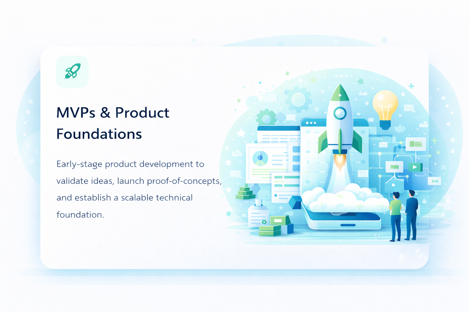 Early-stage product development to validate ideas, launch proof-of-concepts, and establish a scalable technical foundation.